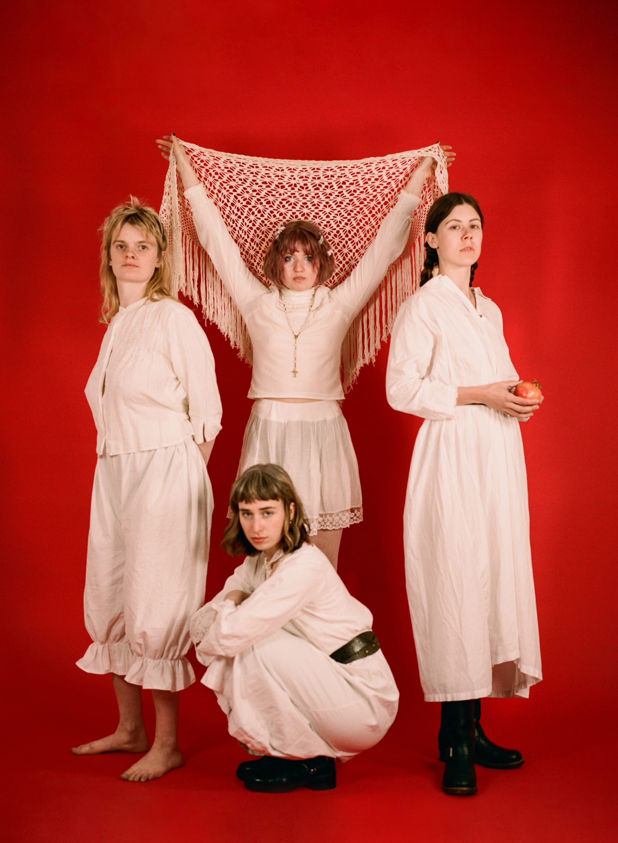Violet Farrer (guitar, violin, vocals), Nina Winder-Lind (cello, guitar, vocals), Kate Mager (bass, vocals) and Ella Oona Russell (drums, flute, vocals) are The New Eves, the Brighton neo-folk outfit pioneering 'hagstone rock'. A commanding quartet who have the presence of a band much further along in their career than a debut album, demonstrating captivating originality and magnetic energy.