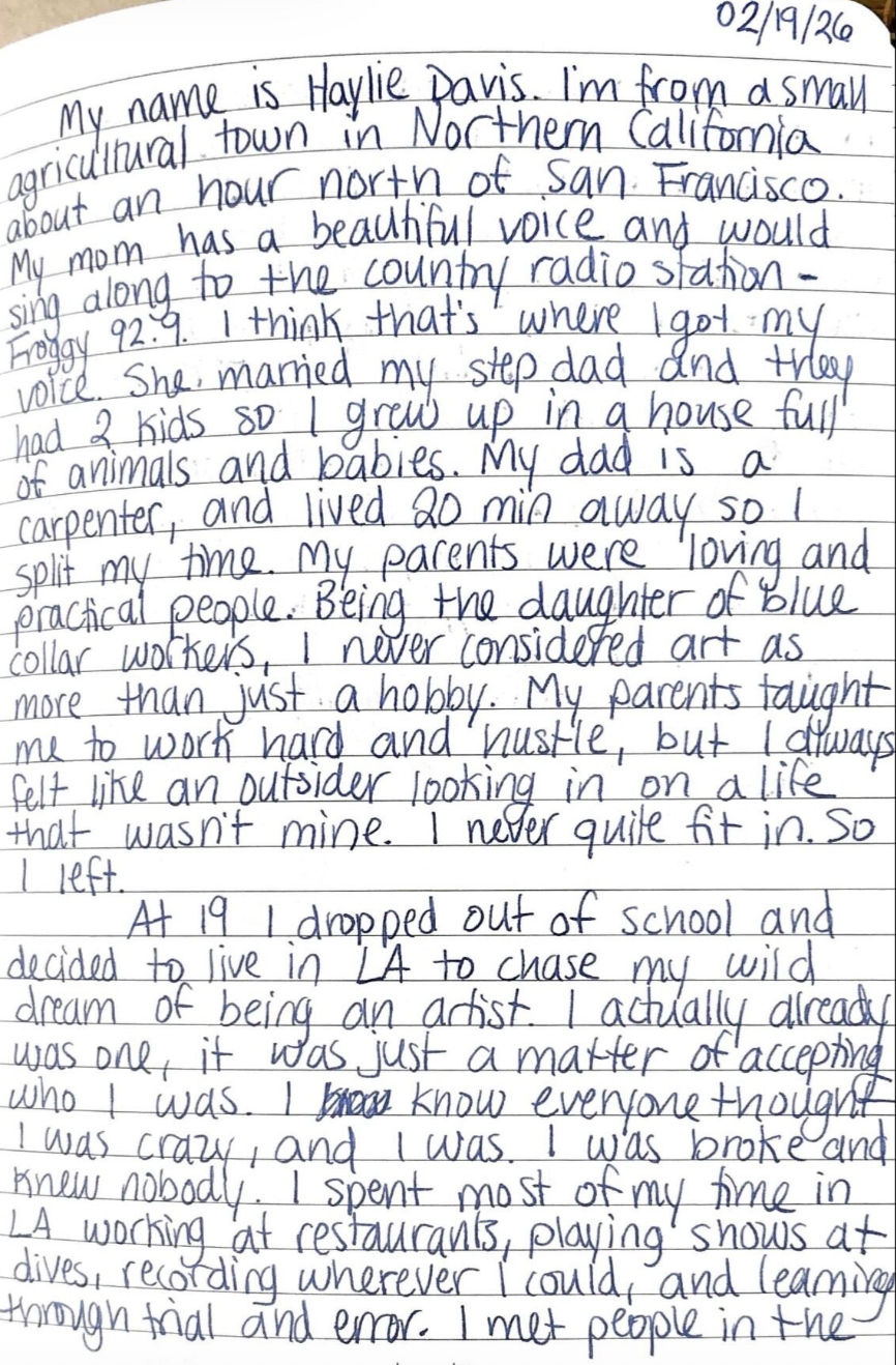 Raised in a small agricultural town outside of San Francisco and now rooted in Los Angeles, Haylie Davis writes songs that feel lived-in and hard won. Raised on country radio and blue-collar graft, Davis threads that humility and work ethic through her debut album Wandering Star. It’s a record forged in hustle, hardship and self-belief; instinct-led and driven by a quiet refusal to let go of creative ambition.