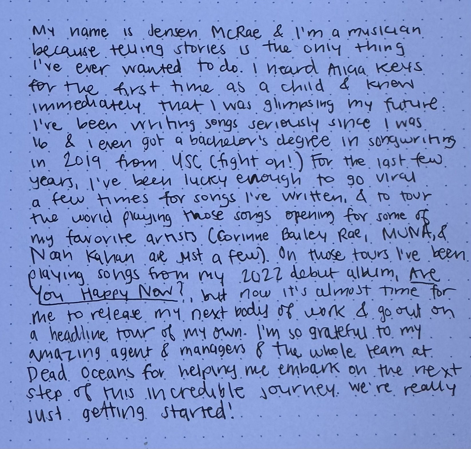 "I heard Alicia Keys for the first time as a child and knew immediately that I was glimpsing into my future."