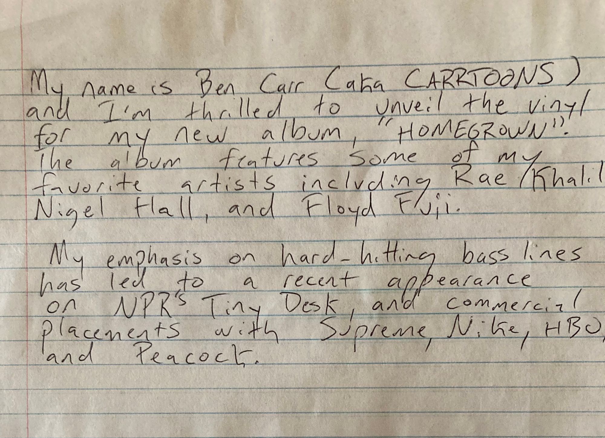 After opening for the likes of Thundercat and Nick Hakim, Ben Carr grew from a New York mainstay into one of the most sought after producers on the East Coast. Now he’s finally ready to break through as a solo artist with HOMEGROWN. There’s a hip-hop inflection to the drumbeats as well as deft piano flourishes, but the greatest source of joy comes to Carr’s one true love: the bass. Simultaneously cutting through and soaking in the hazy atmosphere that permeates the album, Carr is a wizard with the 4-string.