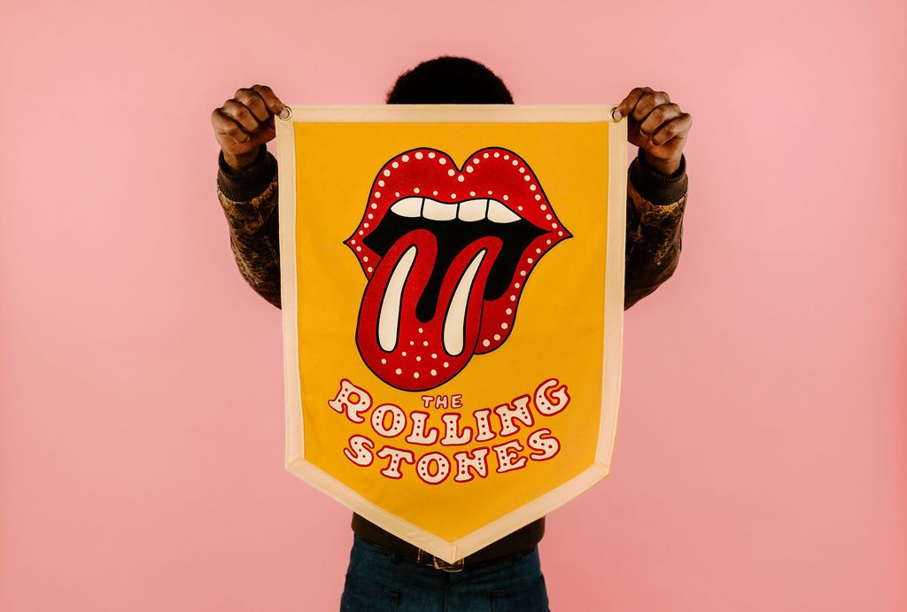 Illustrated by Atlanta-based artist Taylor Rushing, the "Tumbling Dice Rolling Stones" pennant captures the energy and excitement of the iconic song. After all, it's got tumbling dice! Its vibrant design and impeccable craftsmanship make it a perfect addition to any space, adding a touch of rock-and-roll style to your decor.